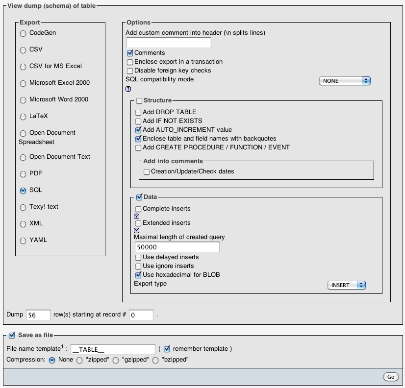 UNCHECK THE STRUCTURE BOX! You just want the data. You also want to save this as a file. Repeat these steps with the two other tables.