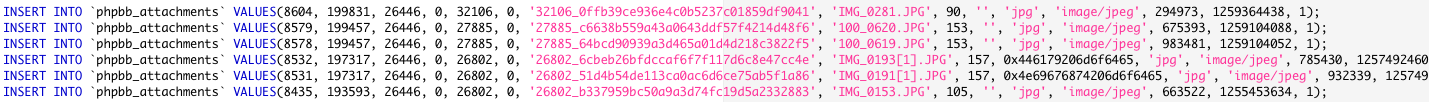 1. Open the phpbb_attachments sql file that we made in step 4 with a text editor.
