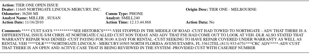 So if you find yourself in the unfortunate situation of needing warranty service on your Ford and happen to live in the Tampa Bay Area, be sure to stay away from Northgate Lincoln Mercury. Even if you have to pay for a towtruck yourself, it’s a fraction of what it will cost you if they deny your claim.